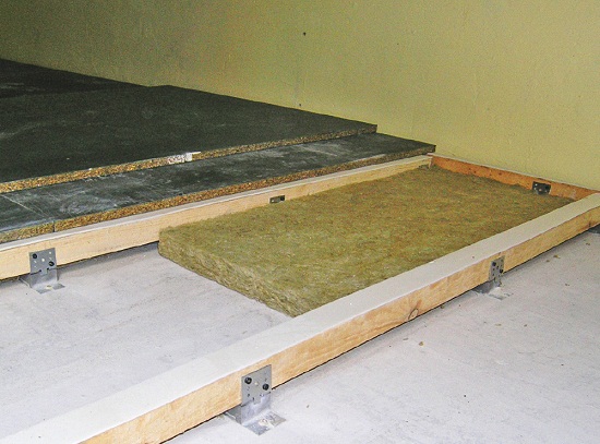 Thus, it is possible to insulate the bottom with a sufficiently high subfield for the first floor or floor insulation for the second floor, which, respectively, is the ceiling for the first floor.