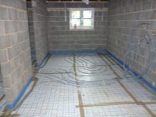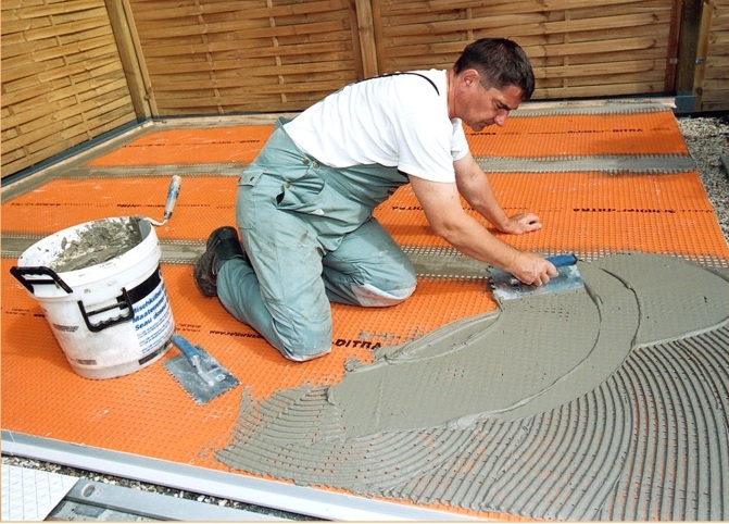 - If the screed is more than 5 cm high, or the installation of a heated floor is planned, then a reinforcing mesh should be laid on the waterproofing.