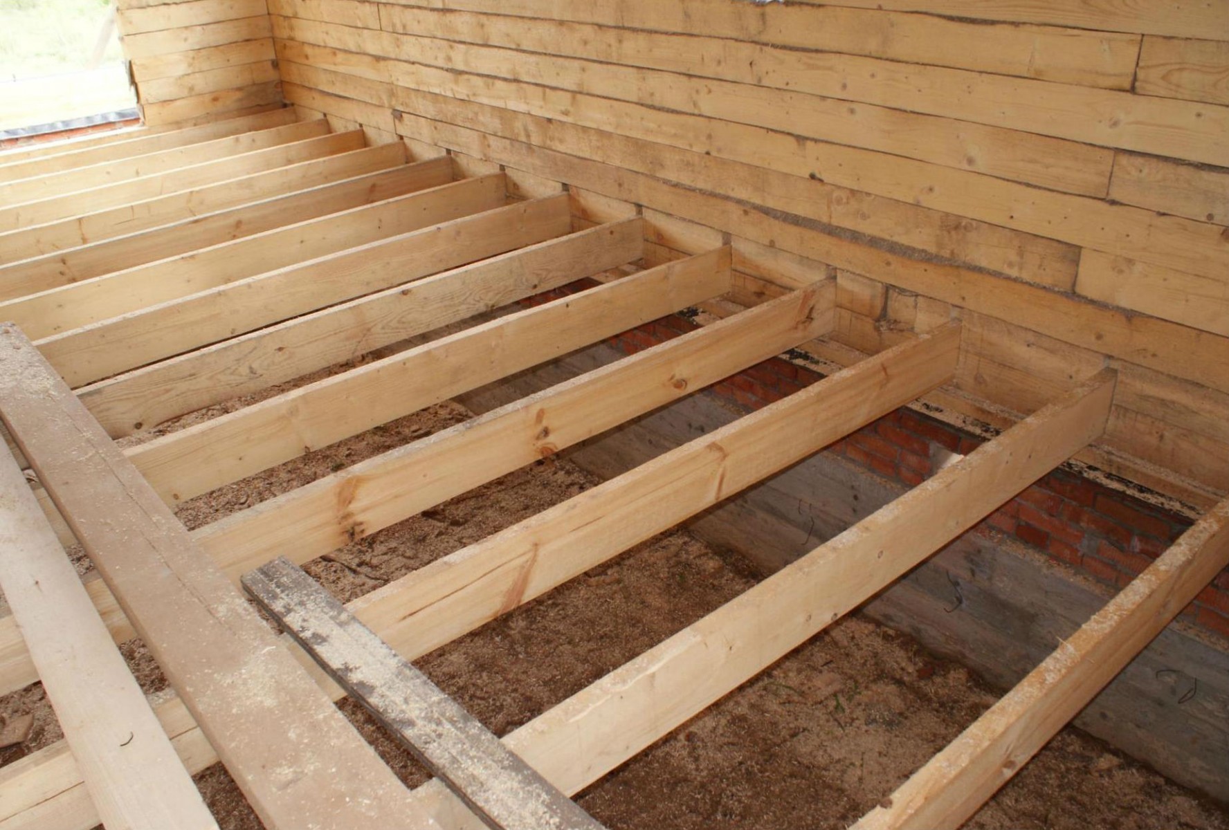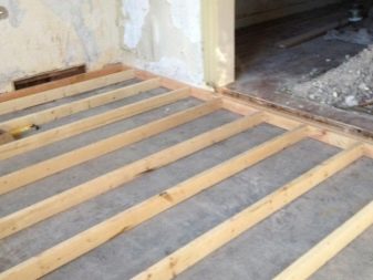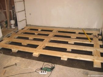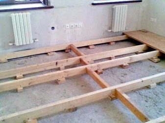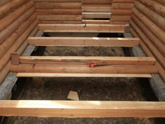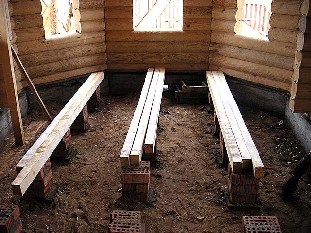 - Prepare lags. If round logs are used as lags, then it is necessary to cut one side.