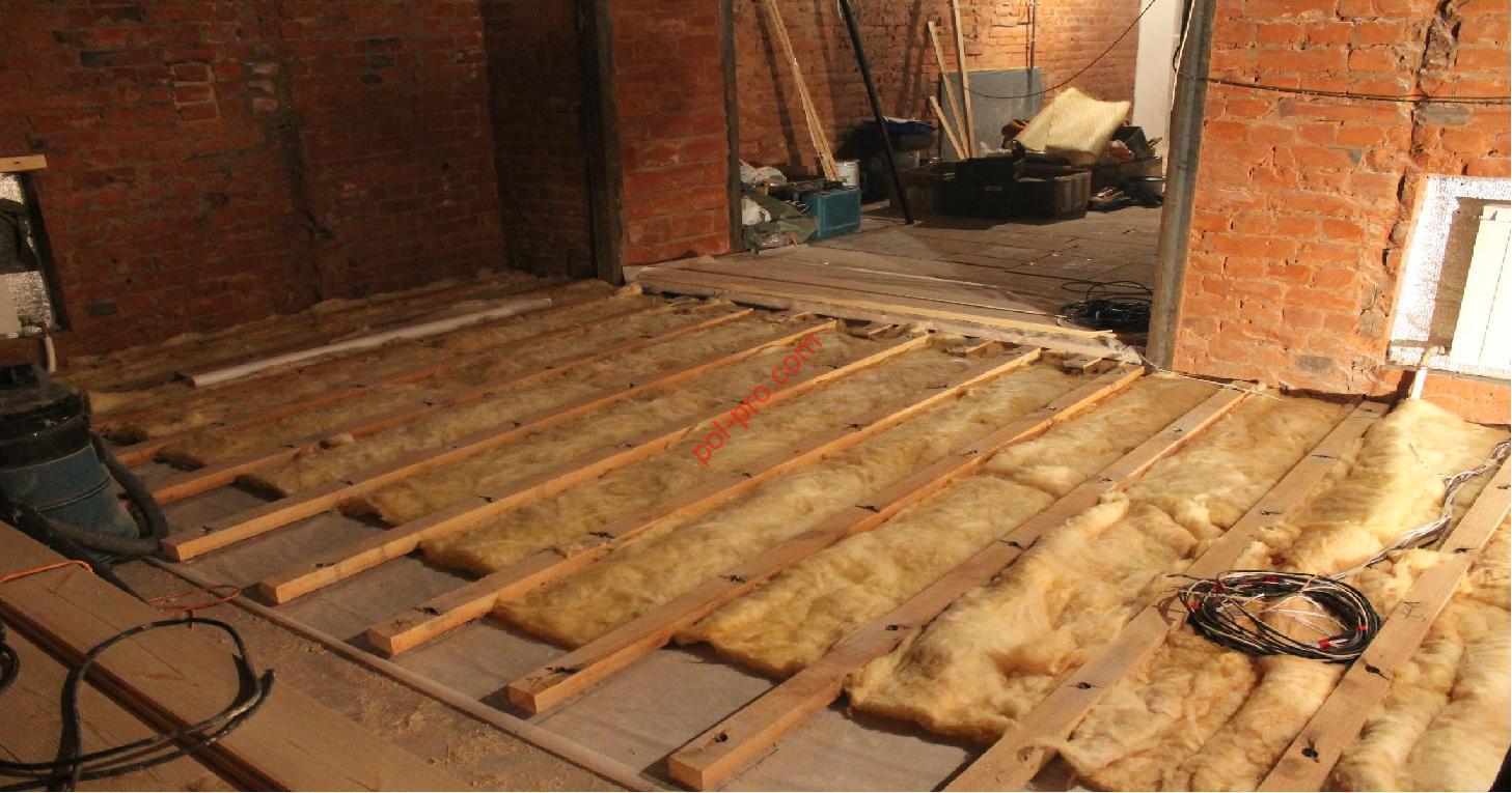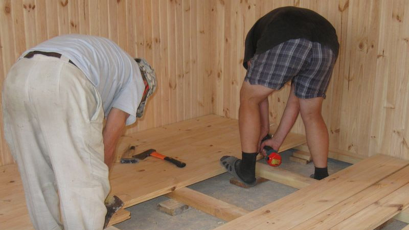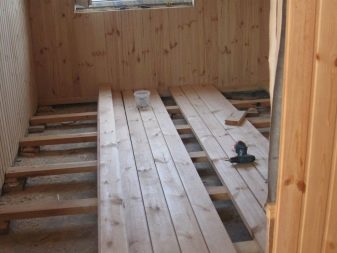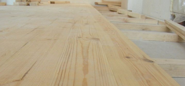 In the same way is determined by the amount of building material for rough coating.Since the floor surfaces in the house are subject to mechanical pressure, for their construction it is necessary to choose high-quality wood without cracks and chips with humidity up to 12%. Pine, cedar, larch are considered more suitable. Before starting work, all building materials are treated with an antiseptic and impregnated with flame retardants. Mounted wooden floor in the following sequence: