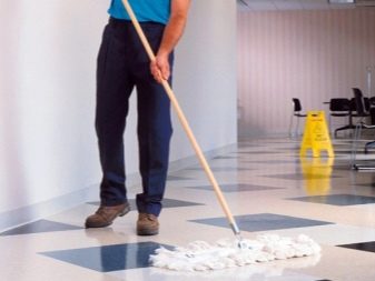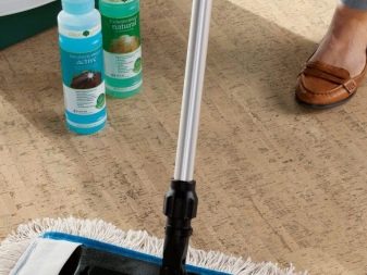 If the coating has a smooth surface, then it can be washed: moisten with water a small area of the floor, immediately wipe it dry.