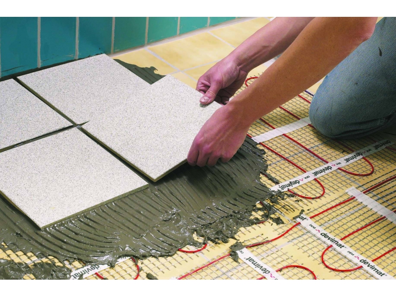 - Heating mat, unlike cable floor, does not require a cement screed. It is a thin cable attached to a synthetic mesh. A heat insulator with a reflective surface, such as foil, is laid out under the finishing coating. On top of an unrolled roll is fixed with tape or glue. To change the direction of the layout, you need to notch the base without damaging the cable. On top of the finish covering. You can use tile, laminate and other materials.