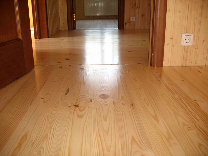 - Lay the finish coat. If the surface of the floor in the house remains wooden, then the finishing covering is made immediately from a grooved board, which is sufficient to be varnished. Varnish will highlight the beauty of natural wood.