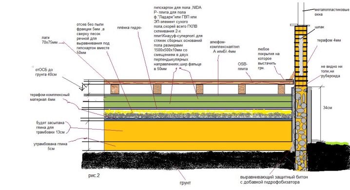The preference given to a particular structure depends on the purpose of the building. In the summer kitchen or in the country, which are operated in the summer, there is no need to create complex structures. In this case, the boards are stacked on the logs. Of course, this floor will not keep warm.