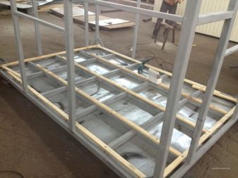 - installation of a metal frame-base according to the type of designer, its reliable adhesion to the floor with brackets, heaters and sealants;