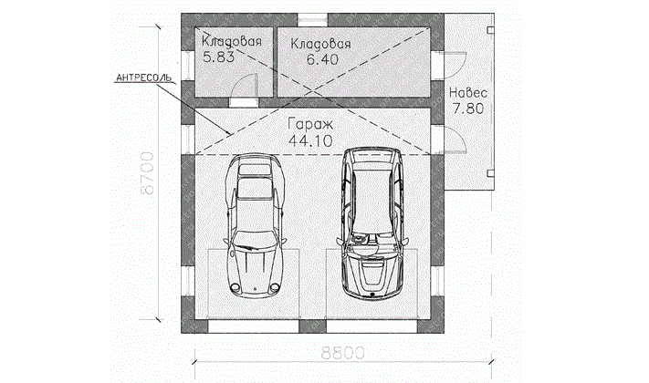 If construction is planned for two cars, then, accordingly, multiply the standard area by two. The variant in which both cars are lined up next to each other assumes an area of 6x12 meters.