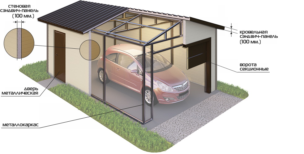 - The sandwich panel is a fairly safe material for domestic use from an environmental point of view. It is non-toxic, so no toxic substances will be released during a fire. Many modifications of the panels are treated with anti-corrosion and antifungal compounds, which significantly prolongs the life of the garage.
