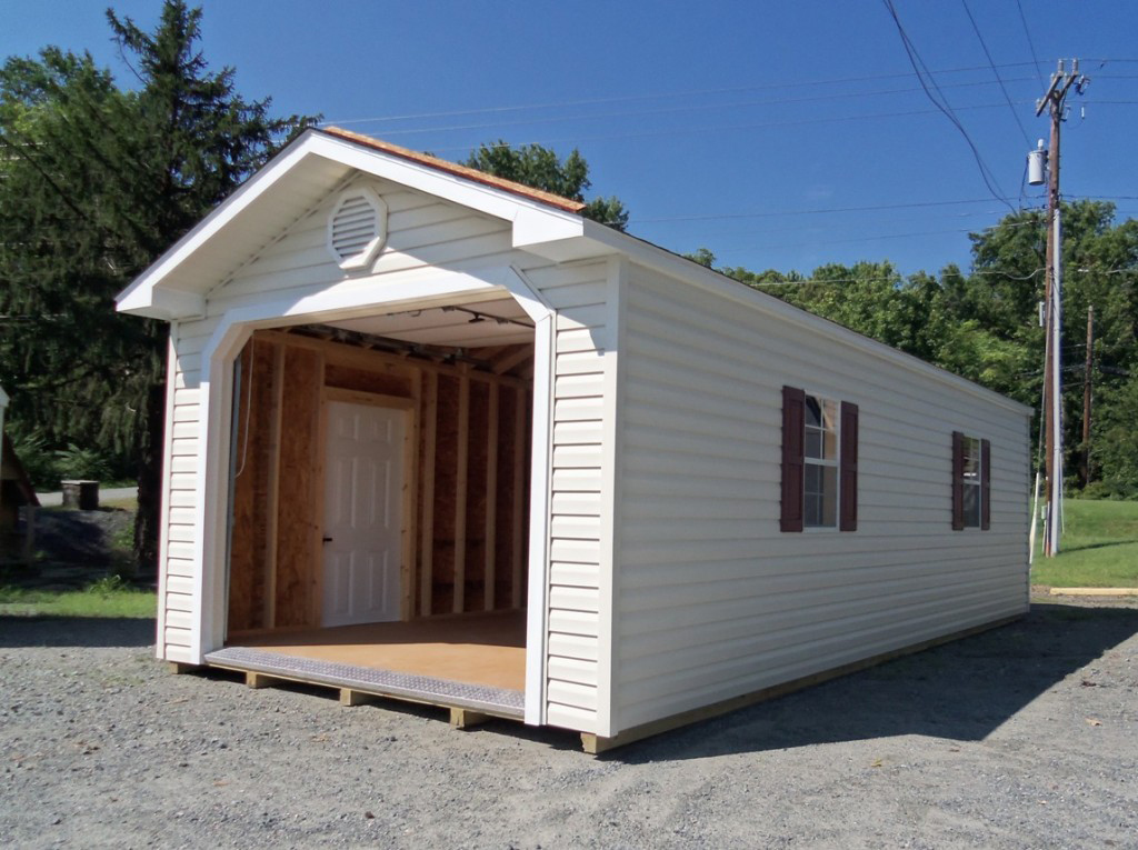 For a gable roof you need a more complex frame, and a water pipe to boot, but it is a more durable solution for any garage.
