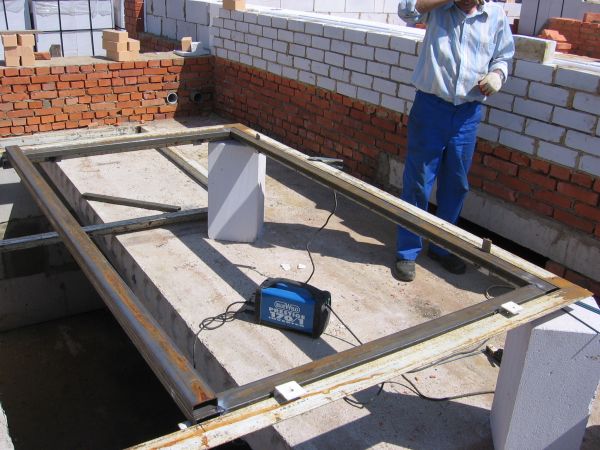 Between the foundation and the frame you need to fix the so-called base bolt - a layer that not only strengthens the grip, but also has hydrophobic properties. After that, we proceed to the installation of the roof frame - the principle is the same, only the profile is one and a half times wider than for the walls.