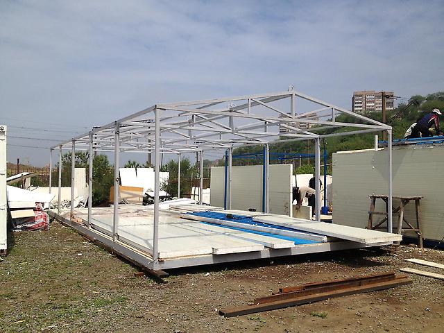 - The speed of construction of the structure, because for the installation of the walls do not need special pig fixtures or a whole team of workers. Offsets of summer to wait is also optional, since the installation can be done at any time of the year. Damaged parts of the structure are usually repaired in one light day, for which it is worth buying an extra sandwich panel or insulation.