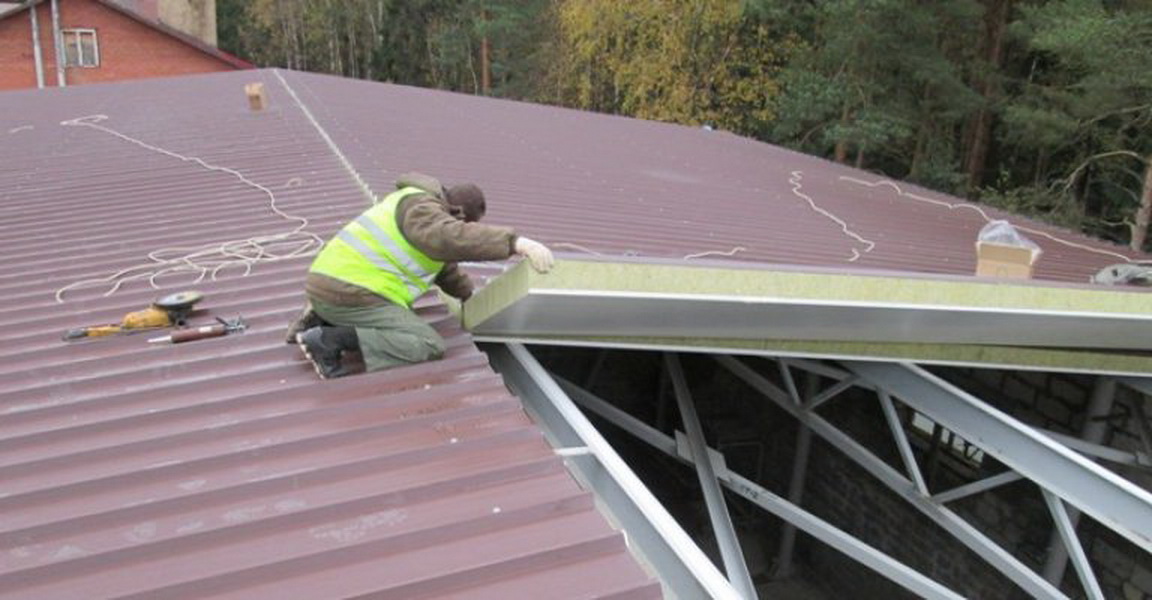 Roof panels come with a slightly different locking structure, where the joints overlap to create greater tightness. After the installation of the place of transition of the roof into the walls is also carefully finished with a special material to create a warm environment and sealant, and in the corners the whole structure is sheathed with splashes and separate corner sheets of sandwich panels.