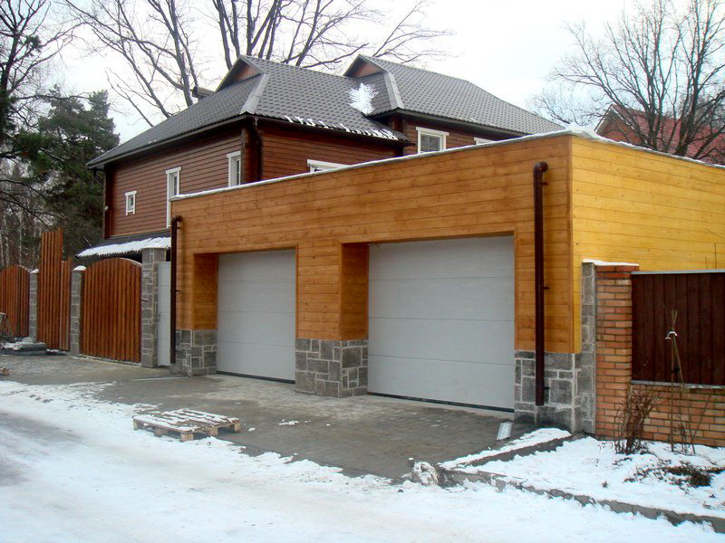 Gates at the garages do two options: the usual on the hinges, sliding doors in two directions and a large roll-shutter in the form of blinds. The gate-casement, of course, is more familiar to the Russian consumer, but they can not always be fully installed and opened, because this requires additional space.