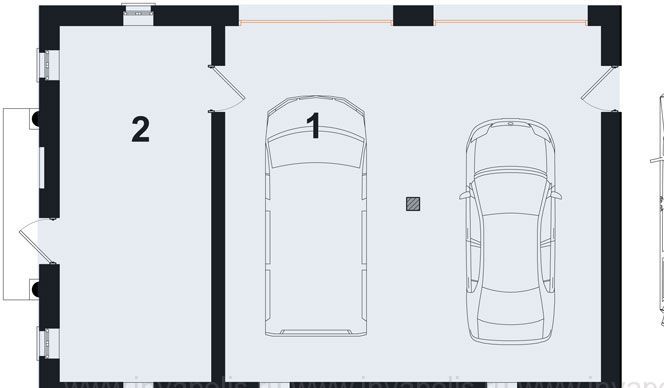 When the site allows you to capture at least one more meter for the construction, you can separate one car space from another with a collapsible plasterboard partition so that the owners do not interfere with each other.This solution is especially important for the inhabitants of town houses, where both the house and the garage are shared by several owners.