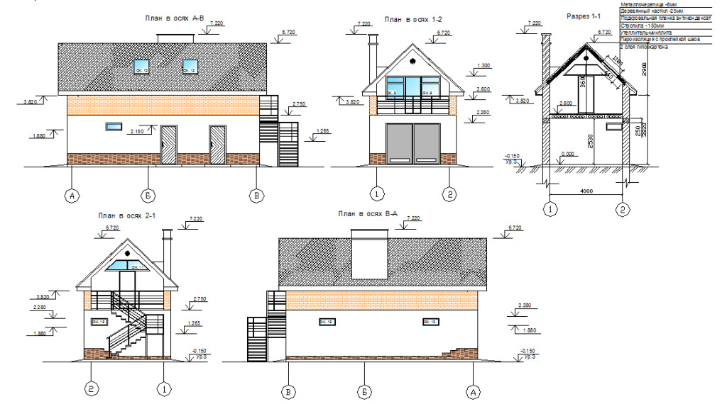 A separate item for the image in the drawing is the roof, which is in the standard layout of two types - single-slope and double-slope. The first option is simple in execution, but applicable only to areas with arid climate. Otherwise, the flat top simply will not withstand the onslaught of large amounts of snow accumulating on it.