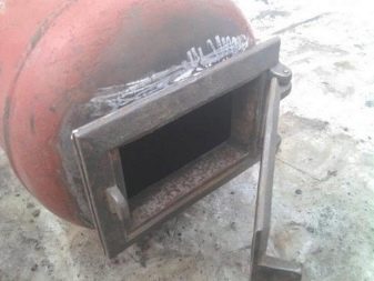 - Attach the door to the frame exactly in the position in which it will be convenient for you to open it when the furnace is fired. Drill holes for bolts in the corners of the door. Screw the door to the frame.
