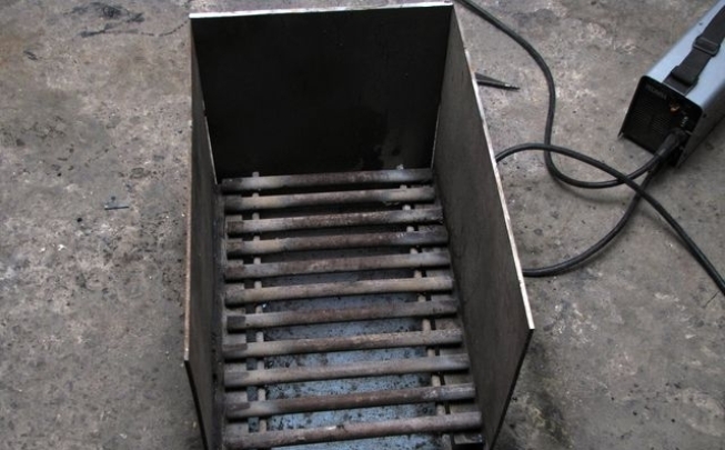 - On the slot from three sides, place the walls of steel sheets (it will look like a box without a lid). Weld it at the bottom of the container, placing the open part of the door - so you can remove ash without problems. Try to box was without holes. Tightness will provide excellent traction.