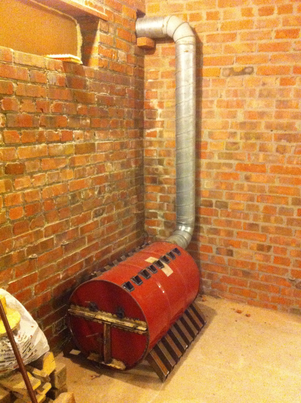 - Upstairs, it is necessary to cut a hole to fit the future furnace door.