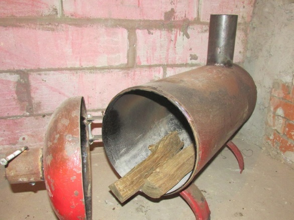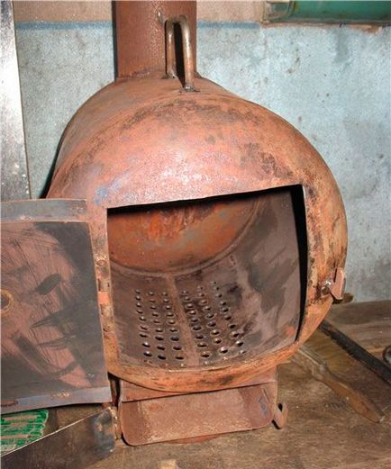 - Behind the cylinder must be cut a hole under the chimney. By the way, the latter is better to produce multi-layered, so that the oven retains heat longer.