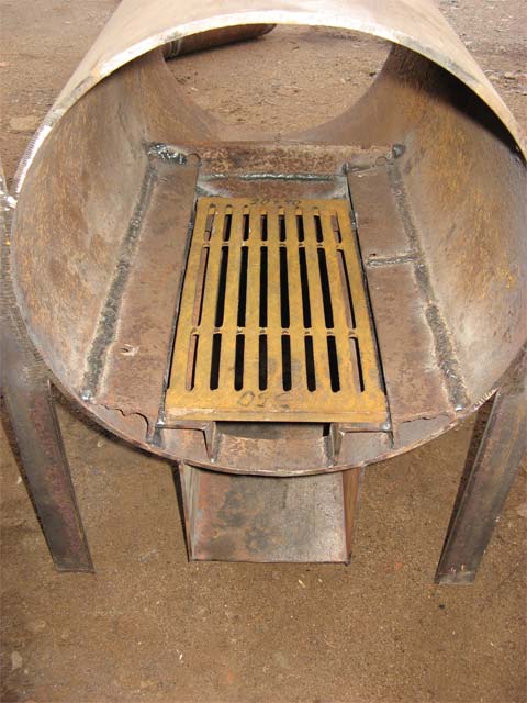 - Decide on the hole for the grate and the size of the blower. In the bottom cut a hole for the grate. Weld the grill.