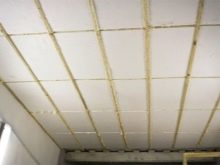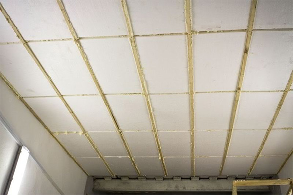 In the case of foam, the material must be applied glue. Then the sheet must be glued to the ceiling, fastened with dowels and eliminate all gaps using foam. Then you can proceed to plastering.