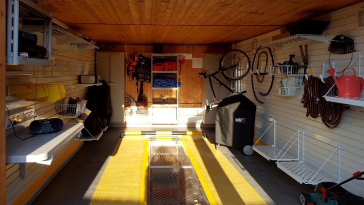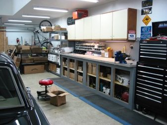 The ceiling of the garage performs not only a decorative function, it installs a variety of lamps that will be needed for maintenance or repair of the car. For headlining the ceiling, they use both traditional boards, drywall or plaster, as well as modern technologies that require a certain level of skill. The garage should be warm, with good ventilation and well-designed electrical wiring.