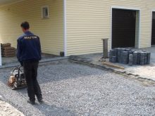 - Before installing the garage is preparing the site by leveling the surface. Well, if the finished site is already covered with concrete or another foundation, but if it is missing, then no problem. It is necessary to ram up the digged earth and then cover it with a layer of coarse gravel or pebbles. If desired, after the completion of the installation of the whole structure, you can additionally lay on the floor with a coating like wooden or metal flooring.