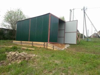 - The main difference between an elementary garage and capital construction is in the absence of comfort, because, in fact, the “shell” is just an awning for a car.Stationary wiring is usually not carried out to it, therefore at night it is possible to carry out repair work only with a large lantern for construction sites. In winter, in severe frosts inside the garage, it is cold enough, despite the wall insulation, and in summer, in the heat, sheets of corrugated board become very hot. These features should be considered when choosing a place to install the structure.