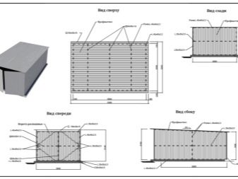 - On the preliminary drawing, indicate the length and height of each wall, taking into account the size of the car. According to the standard, there should be 7 elements: a solid back wall, two flexible sheets for each sidewall to give the wall a rounded shape, and also two sheets per gate. If the latter are automatically raised, then the elements will be one less. The lower part of the walls is welded to the supporting beams, the upper one is put on overlap in order to better move apart.