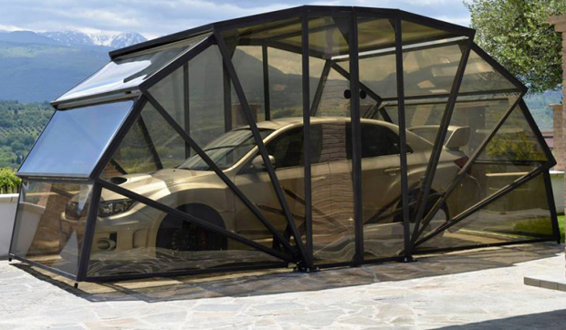 - Only owners of a country house can afford a spectacular view of a transparent fiberglass shell shell, but it is always clear what is happening with the car. Smoky glass is darkened when exposed to active sunlight, creating a cool inside the room. If you choose a frame in fiberglass sheets to match the residential building, you get a single ensemble.