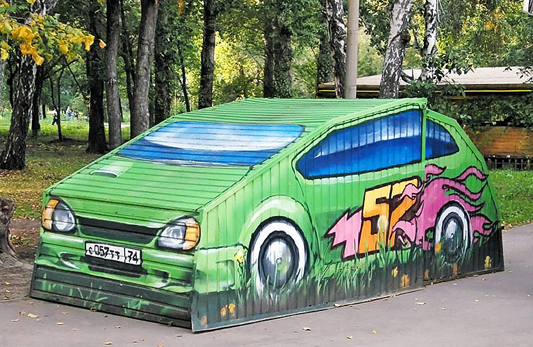 - An alternative to gray and drab metal garages - a variant with bright graffiti. If you paint the walls with anti-corrosion paintwork, then this decor will also bring additional benefits. The eye-catching view of the garage often psychologically repels fraudsters from penetrating inside.
