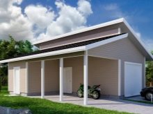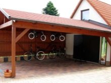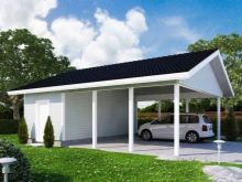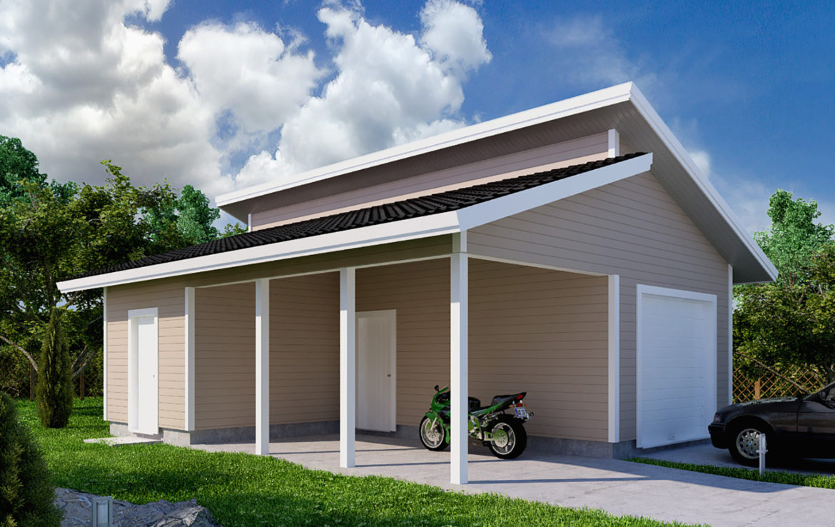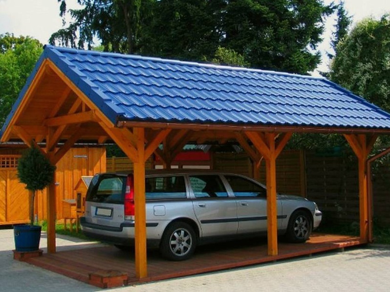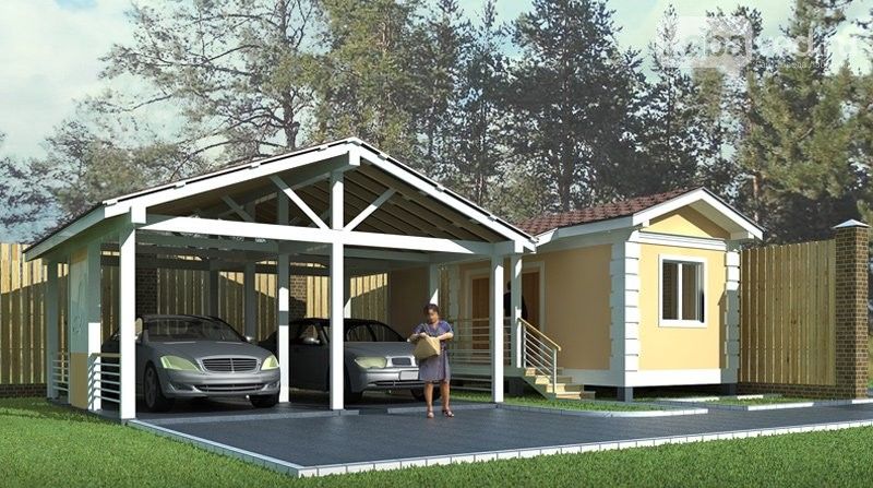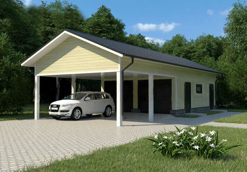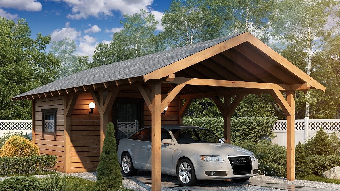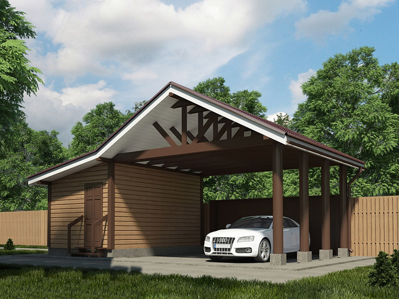 A carport with a garage in a private courtyard solves many problems. There is additional storage space for a motorcycle or boat, as well as a trailer for a car or various household equipment.