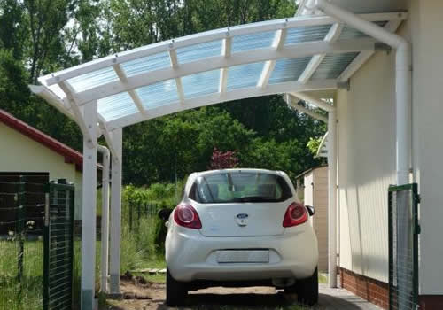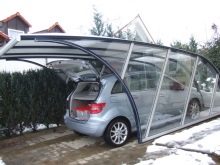 From this material it is possible to build a closed type carport. Get something like a veranda for the car. It is possible to make such a construction from other materials - with the use of timber, columns made of brick or steel pipes, professional sheet for the roof and walls.