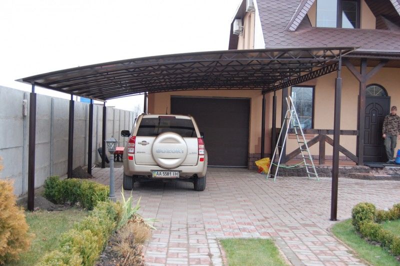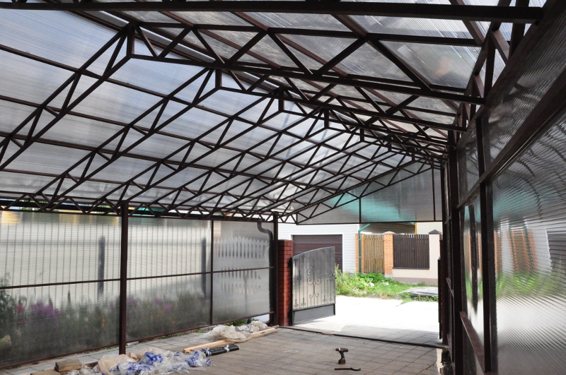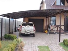 You can build a detached carport, or attach it to the garage. Due to the low weight of the polycarbonate itself,Mount such a large visor to the wall of the capital structure can be without fear. To perform such work, do not need a team of builders. Enough two people with a little bit of experience installing simple structures.