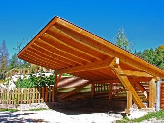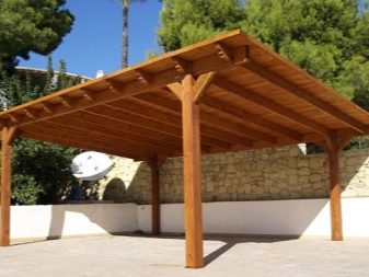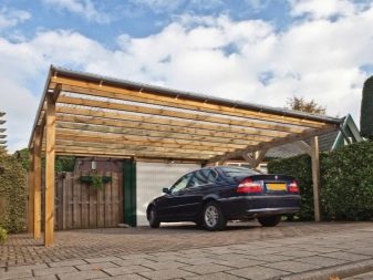 Such a canopy will differ little from a conventional garage and can be a worthy alternative to it in the country. It is enough, for example, to build a single-leaning canopy for a single machine, having erected an economic extension in addition to it.