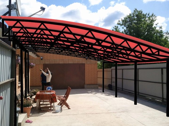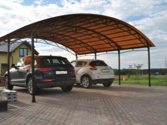 The parameters of the carport should be related to the dimensions of the car. If the machine measures, for example, 1.6 by 4.3 meters, then the carport should cover a 2.3-by-5.5-meter area. For an SUV, you can select a platform measuring about 4 to 7 meters.If we are talking about parking a few cars, then the area of the canopy increases accordingly.