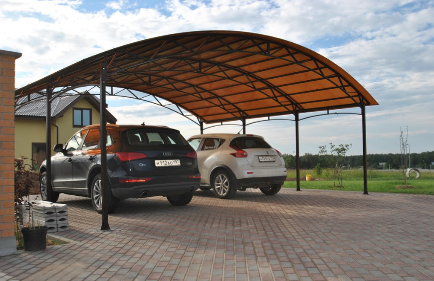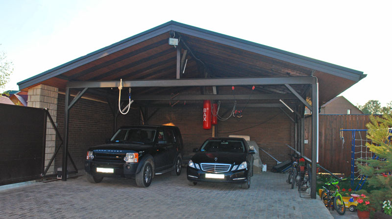 If the plot area allows, nothing prevents to build a freestanding canopy, under which a couple of cars fit, or even more. You can choose a closed or open version of the structure.