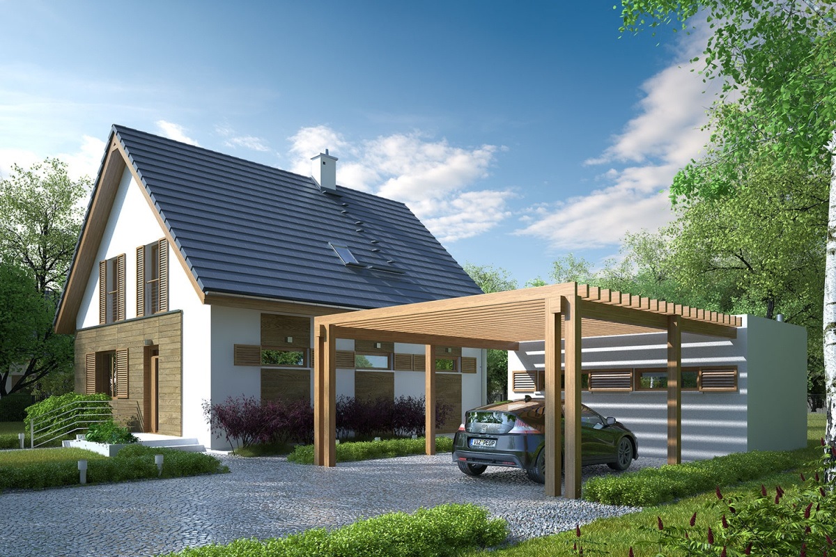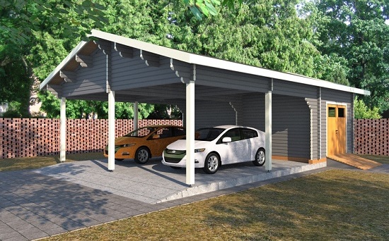 Such a project is not so convenient when it comes to the maintenance of 2 cars. If you park one of them under a carport, the second one at that time will not be able to leave the garage.