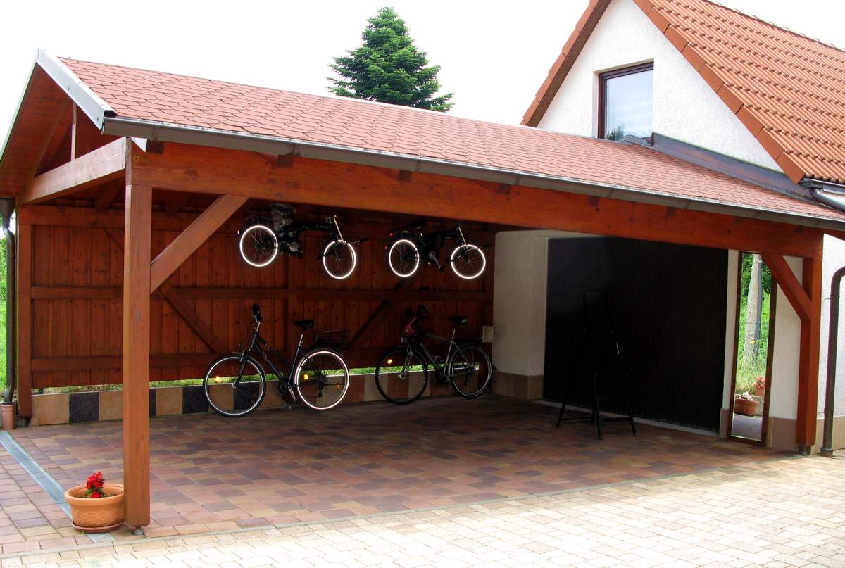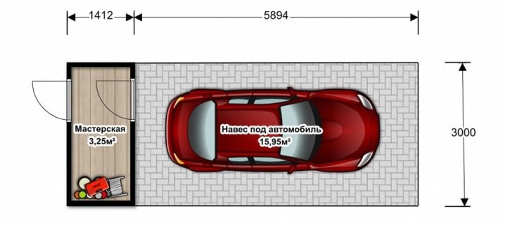 - Under such a "visor" you will not keep wheels and other things that traditionally find their place in the garage. The problem can be solved if the building is adjacent to the shed.
