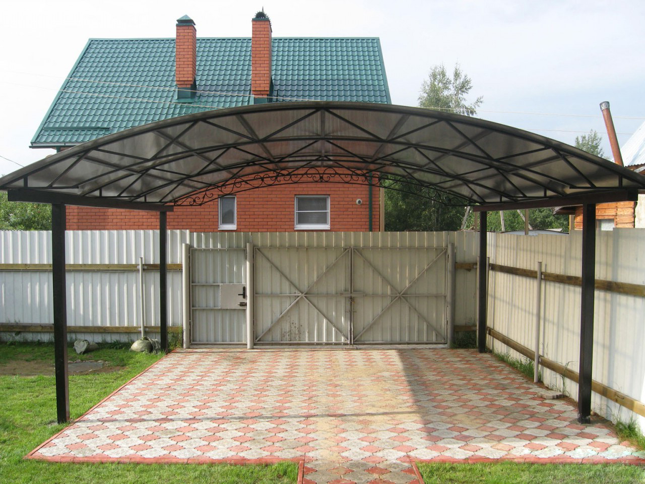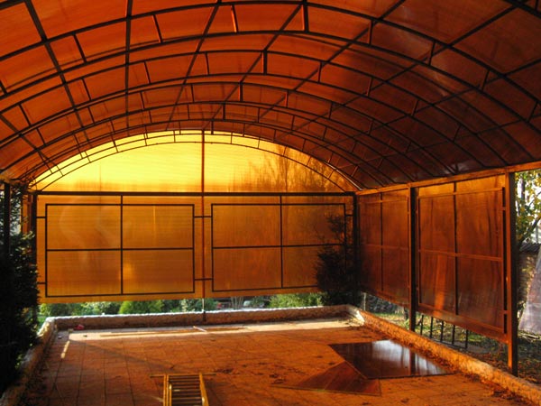 A good option - polycarbonate metal roof. Both metal and polycarbonate are classified as durable materials. As a result of such construction a durable and reliable structure is obtained that will be used for decades. And given the large selection of polycarbonate colors, it is easy to make a canopy in a design that you like best.