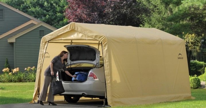 Cheap and angry is solved the issue of storing the machine with folding design with an awning. Such a shelter will be convenient to use in the summer. It will be able to protect the car from overheating on a hot day and protect it from rain if the weather worsens.
