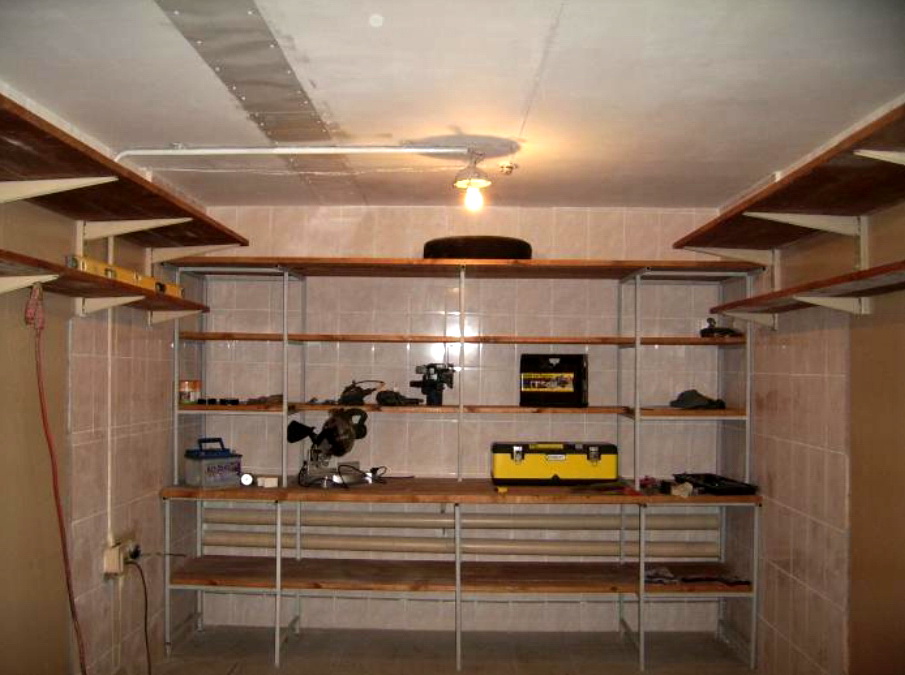 Racking - one of the most common rational decisions of the organization of free space when placing things in a limited volume of the house or garage box. The surface of the walls of boxing and calllean against a rack or strengthen a dozen or two shelves and put on them a variety of items: from fishing supplies and clothing to the outboard motor and a spare engine block.