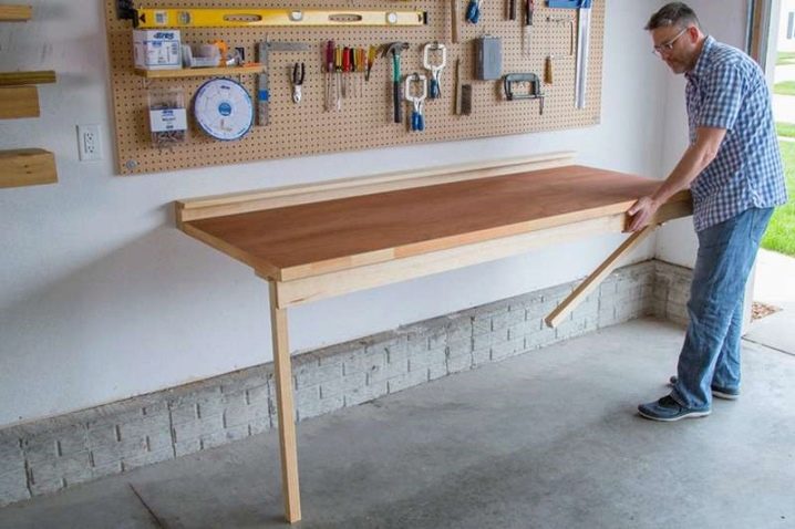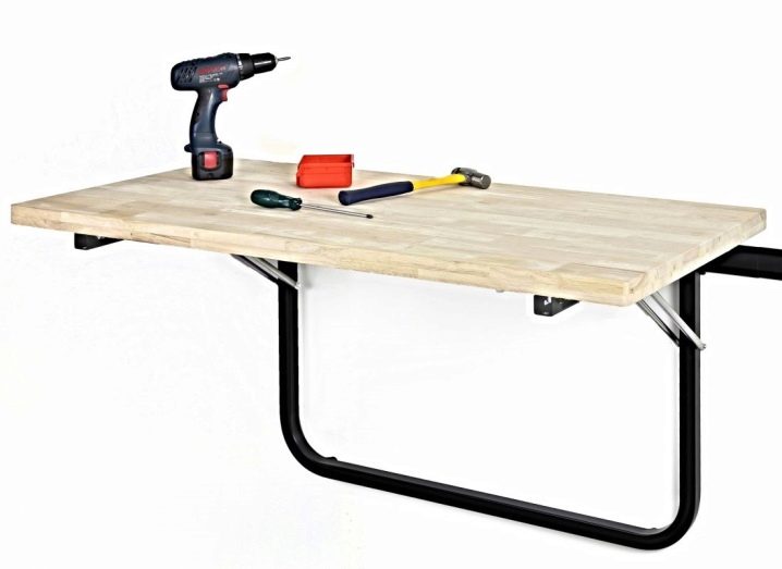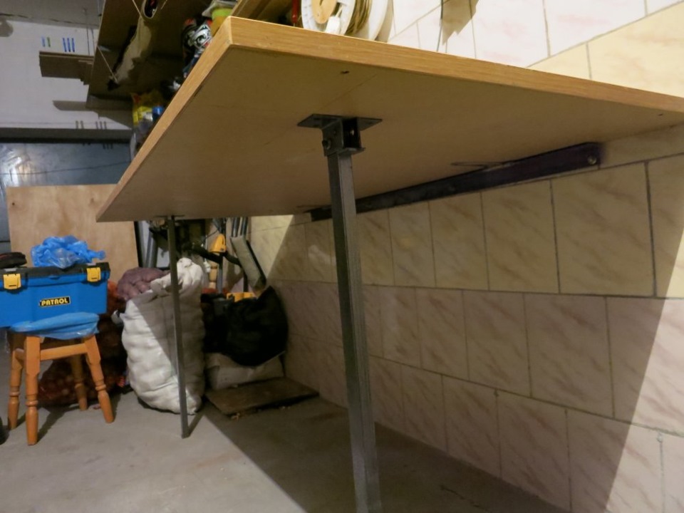 Table with folding hinged table top - ideal for a small garage. This stand does not take up much space, but can be a table of a very decent living space. In its manufacture often use the materials from which the old cabinet was made.