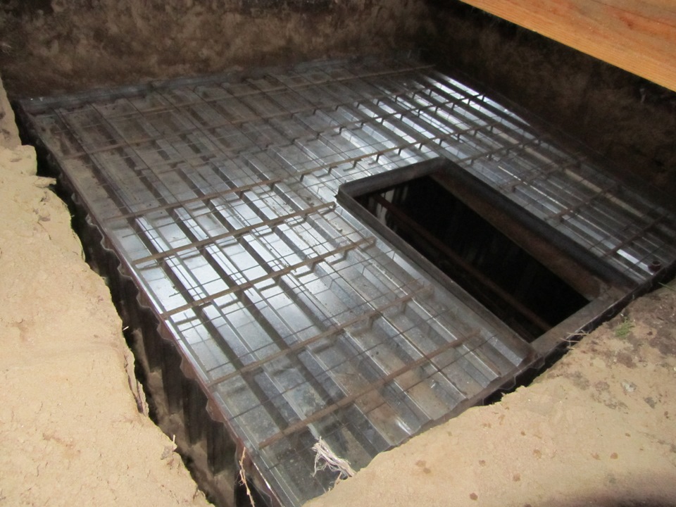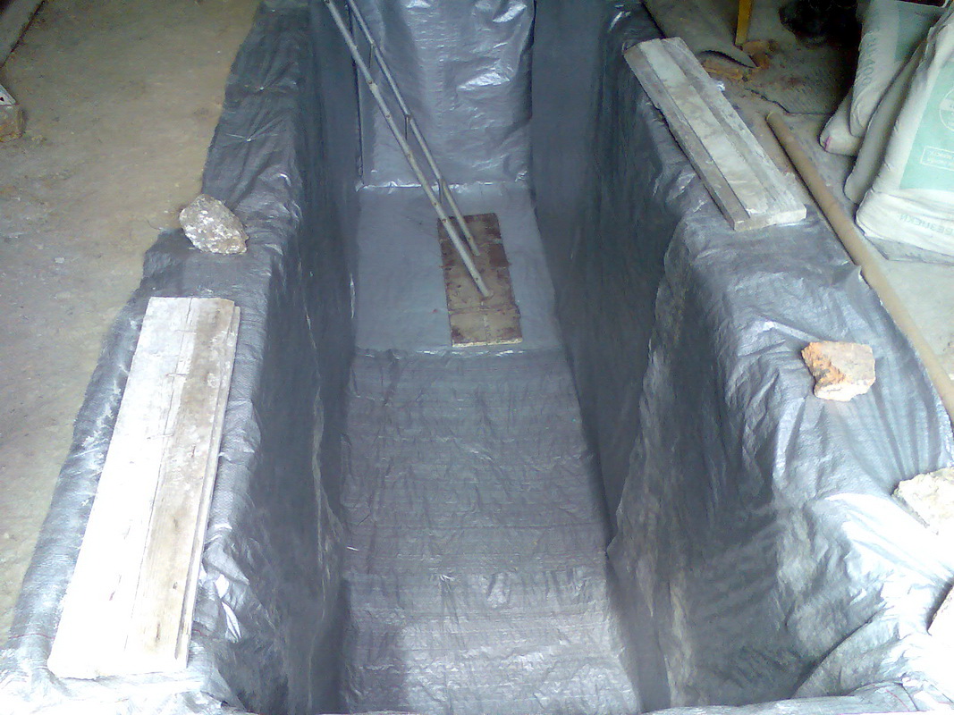 - If the caisson is missing, a so-called sandbag of 25-30 cm thick is laid on the floor for waterproofing, the roofing sheet is covered with roofing material or other material, the seams are glued with bitumen or mastic.