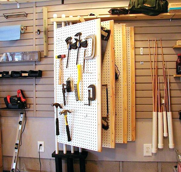 - If you attach a figuratively carved plank with holes and brackets to the wall above the workbench, besides the hooks, it will be of great help in storing and using pencils, drills, bobbins with threads or twine.