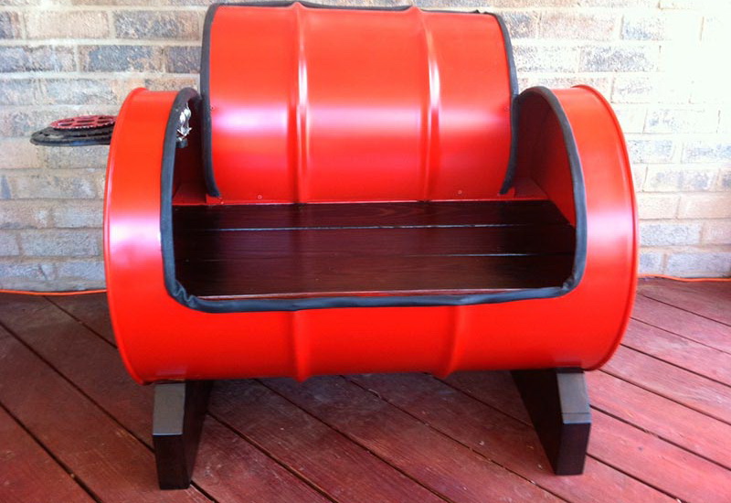 - From the old 200-liter barrel with the grinder you get a wonderful chair, if you beat it with foam rubber or rubber. It can be the basis of a table for something needed.