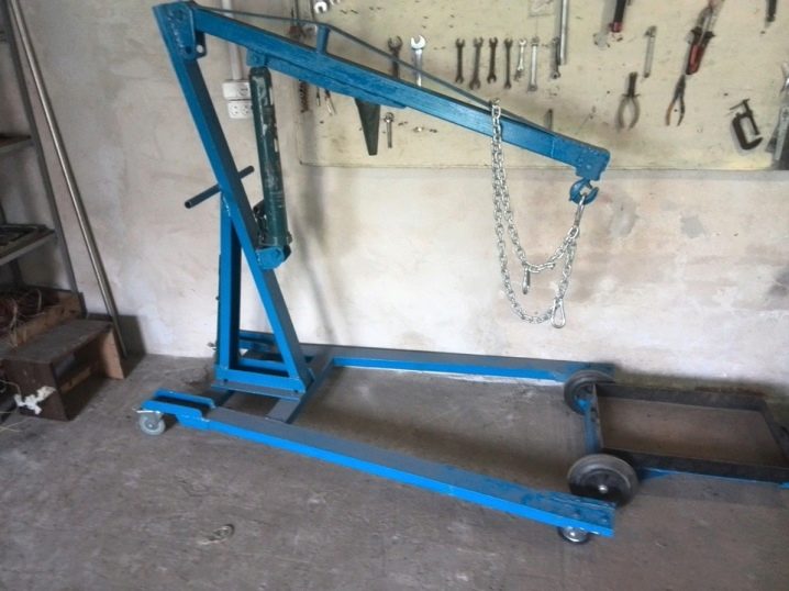 Great help with such operations can provide a crane with a winch. It can be equipped in the garage either by purchasing in a supermarket, or with your own hands, according to a simple scheme.