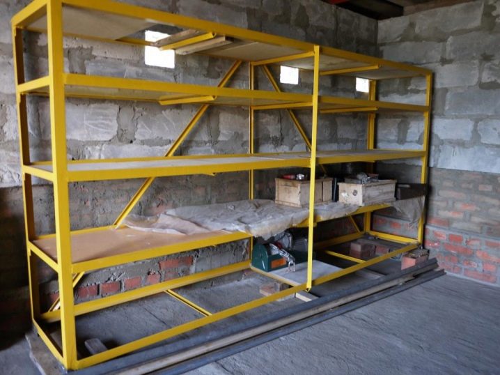 Rack for the garage can be purchased in retail chains - this is an option that almost does not require energy costs. Installation / disassembly of such structures is elementary and does not require highly skilled fitter.