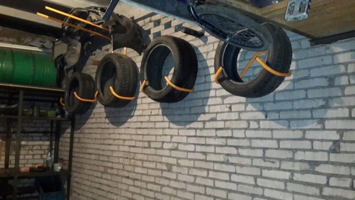 - In order to place them in a standing position, it is recommended to construct a storage place on the wall with your own hands. In fact, it is a wall triangular frame into which tires are inserted in a standing position.The further the frame is installed from the heaters, the better the tires will remain.