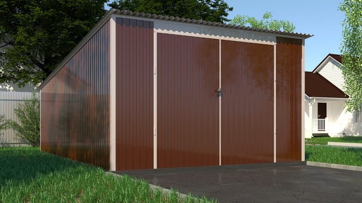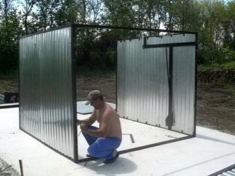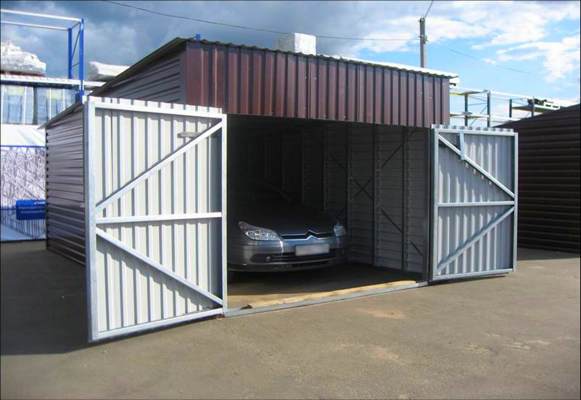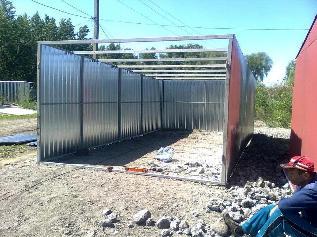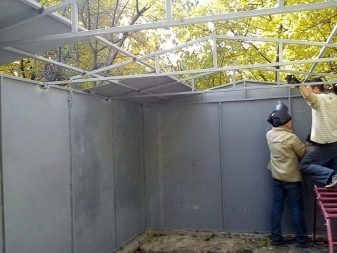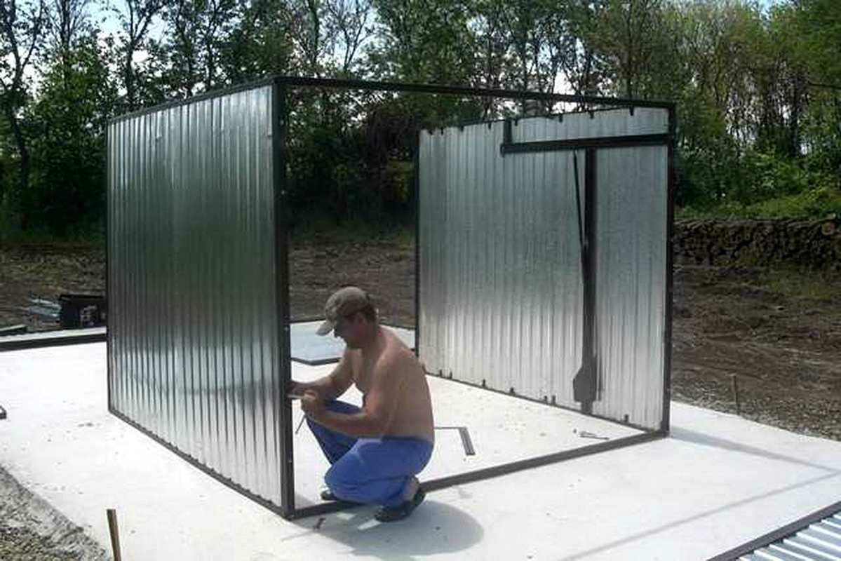 - Sheet metal sheeting. For the formation of the walls of the garage is usually used sheet steel or steel sheet. The material should be fastened with metal screws, laying rubber washers under them. After installation, the surface is primed and painted.