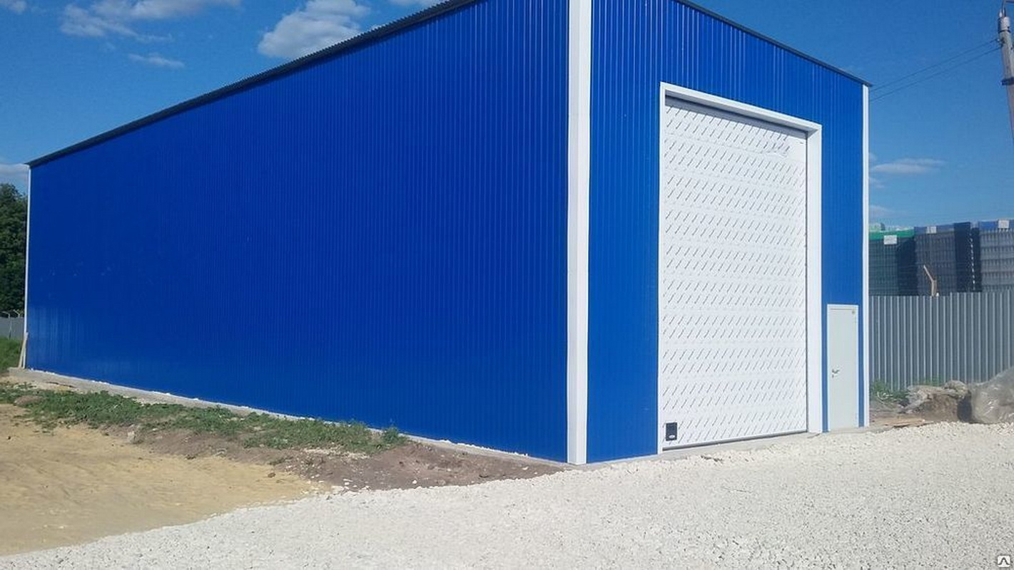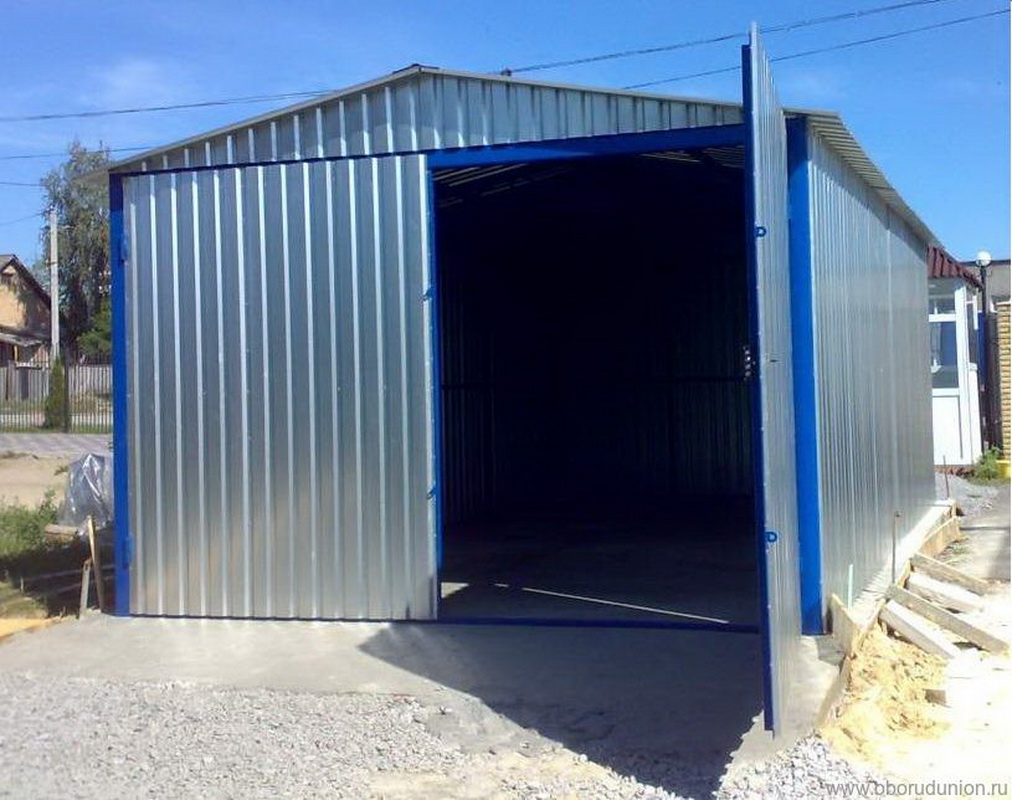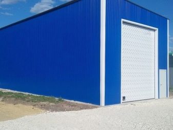 The walls of the building are made of corrugated with a thickness of 2 mm, attached to the frame with bolts and a metal corner.
